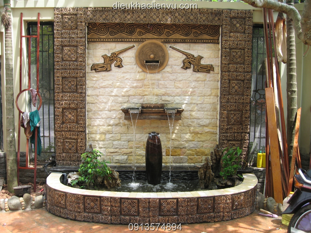 Còn nếu bạn muốn kéo một chút truyền trống thay vì mảng miếng hiện đại thì tiểu cảnh ứng dụng các họa tiết trống đồng nhà chú Huy Sài Đồng sẽ giúp bạn hình dung rõ nét hơn về sự kết hợp hài hòa của mỹ thuật