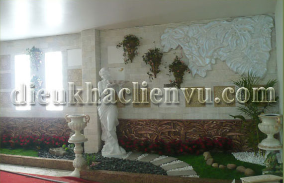 Tiểu cảnh nội thất, tiểu cảnh kết hợp phù điêu đẹp, tiểu cảnh phong khách, tieu canh noi that, tieu canh phong khach, tieu canh phu dieu, tiểu cảnh văn phòng